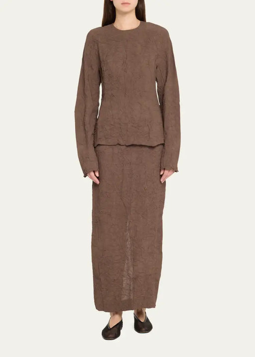 Mid-length crinkle skirt brown